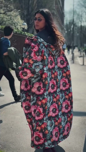 Heavy-duty YKK zippers and a spacious elasticated hood offer extra protection. Sized to layer over coats or jackets for added warmth.