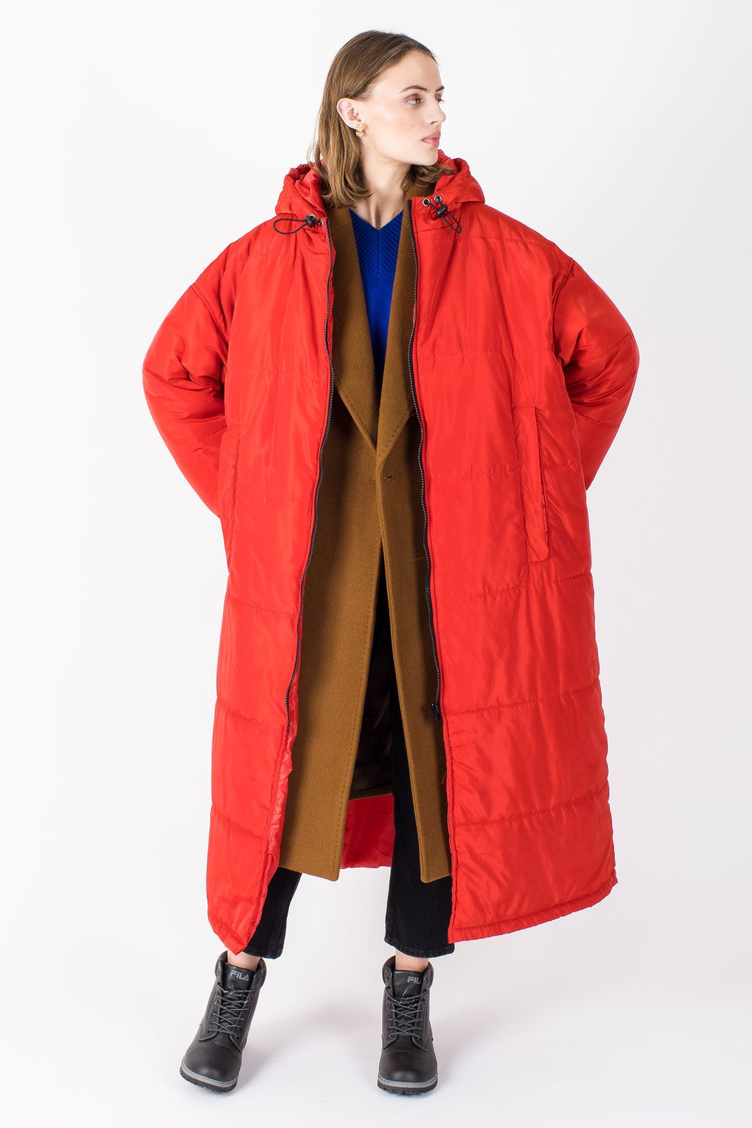 Heavy-duty YKK zippers and a spacious elasticated hood offer extra protection. Sized to layer over coats or jackets for added warmth.